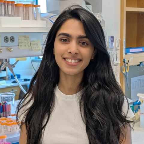 Sanjana is a second-year biochemistry Ph.D. Student in the biochemistry program. Prior to moving to Dallas, Sanjana completed her B.S. in biochemistry from the University of British Columbia and worked for two years in the biotech industry as a research associate. She is currently part of the Conrad Lab, studying the mechanisms of viral RNA expression and stability in Kaposi's Sarcoma Herpesvirus infection. Outside of work, she enjoys reading, going bouldering with her friends, and crocheting.